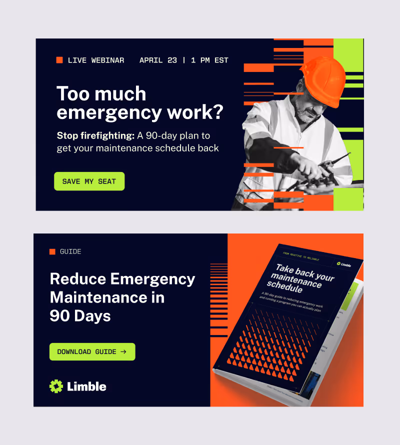 By simplifying the form into a more cohesive, balanced shape, the new logo better reflects reliability, precision, and uptime—core to what maintenance teams deliver every day. It also feels more modern and mature, aligning with Limble’s growth into a more enterprise-ready platform. The result is a clearer, more confident mark that not only scales better across applications but more accurately represents the strength and stability our customers expect.